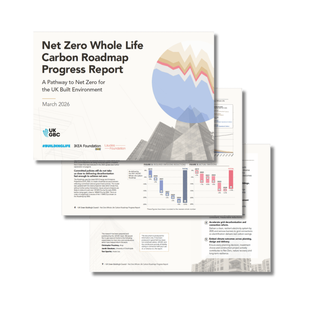 Launched in 2021, the UKGBC’s Net Zero Whole Life Carbon Roadmap, sets out the UK’s pathway to net zero across operational and embodied carbon emissions from buildings and infrastructure. The latest progress report shows where the sector is accelerating and where it is falling behind in helping the UK reach its net zero target.
