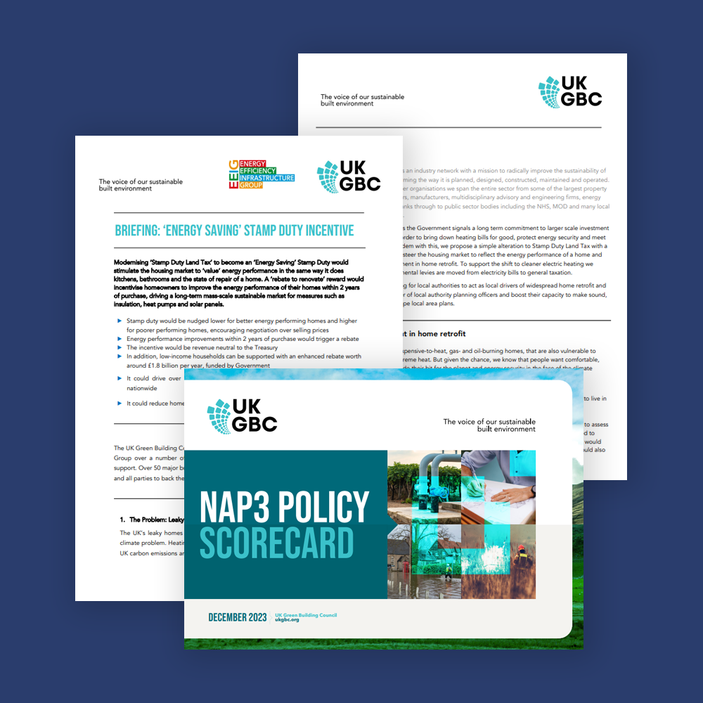 These documents are produced by our policy team and serve multiple purposes. Often they represent UKGBC’s position or recommendations on an area of national, or local, policy. Here is also where you can find our responses to government consultations.